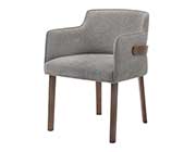 Matching the rectangular table top in Walnut Veneer finish are 6 chairs that adopt a club chair design. Upholstered in grey fabric, the chairs have a wraparound design ensuring you of comfort while seated.