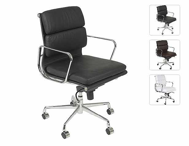 Chromed aluminum frame with leather seat and back. Chromed aluminum base and armrests. Tilt, swivel and gas lift. Locks in multiple positions.Knee tilt mechanism. 1 piece per box. Suitable for commercial use. Okay for FedEx or UPS shipment.Dimensions:Short :W: 23 H: 37-40 D: 27Tall :W: 23 H: 44-47 D: 27Finish / Color / Materials:Italian leather matchr. Coffee, White, Black