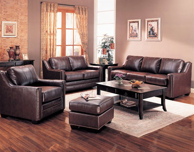 The rich, elegant design of the GIB Sofa Set (Sofa, Loveseat and Chair) brings together a soft, durable 100% brown bonded leather and exquisite design to create the elegance in your home decor. With the comfort of attached seat and back cushions this piece maintains a cozy atmosphere while perfectly capturing the essence of updated traditional design. This group features scooped down track arms and antiqued finished individually placed nail heads, 100% all bonded leather, sinuous spring base with coil spring cushion. Enjoy the generous style and comfort of this wonderful GIB CO-001 Collection in your living room!Elegant design and comfort in one sofa set!-Attached seat and back cushions-Scooped down track arms-Antiqued finish individually placed nail heads-Coil spring cushion-Durable constructionDimensions: