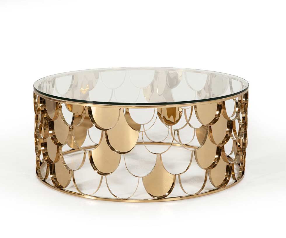 The Modrest Javier Modern Glass and Gold Round Coffee Table make a great accent piece in any room.