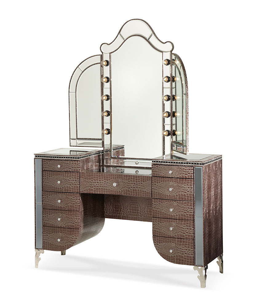 Hollywood Swank Upholstered Vanity and Mirror by AICO