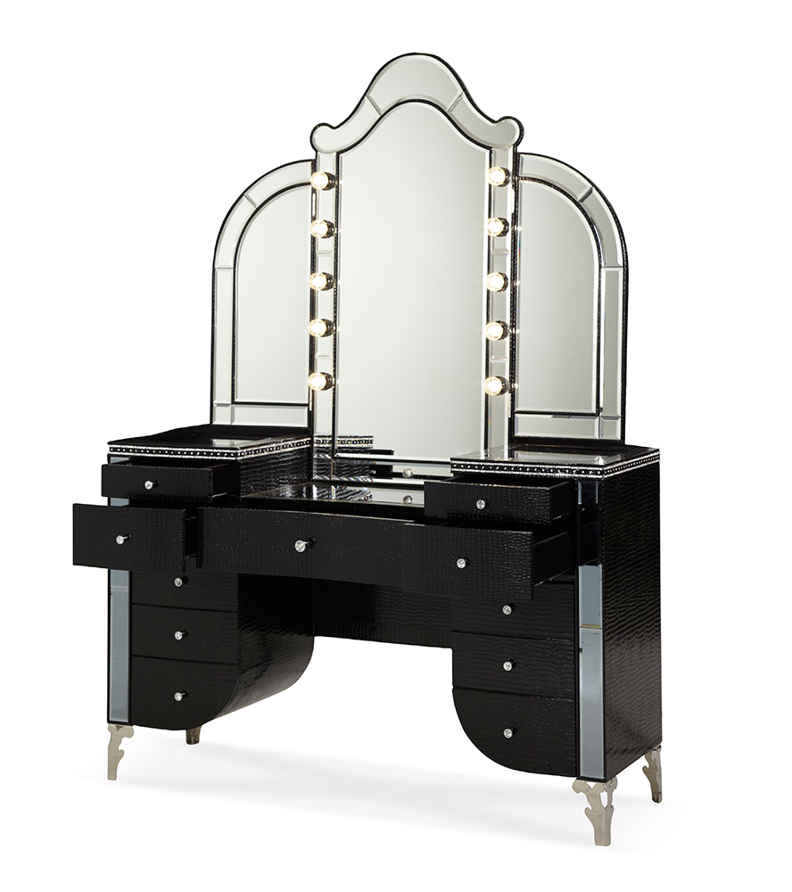 The Hollywood Swank is designed with you in mind. Take this Vanity home to help you keep your make-up and beauty creams in order. With convenient drawers and mirrors, you'll love having this furnishing as part of your bedroom set