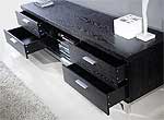 Classic yet modern, the BM03 Entertainment Console offers a sleek contemporary style that will fit into any decor. Enjoy the Black Veneer with Stainless Steel Base and drawer handles, 4 media drawers, and a glass shelf for components. Features: