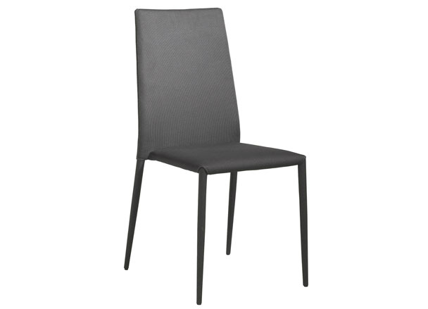 The devil is in the details. First of all, these chairs are covered in a highly durable fabric that extends over the steel legs, giving the chairs a soft, monochromatic look. And the subtle curves of the top edge and sides of the back further the impression that these chairs are for people.