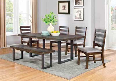 This beautiful dining table & chairs set boasts of fixed solid wood top dining table, "U" shaped metal base in matte black finish,
