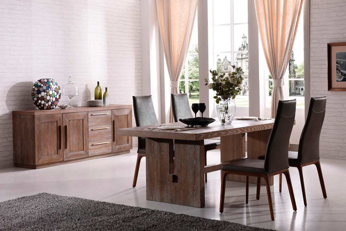 Modern White Wash Oak Dining Table is designed with classic symmetry featuring a rectangular white wash oak veneer table top and can seat 6 comfortably.