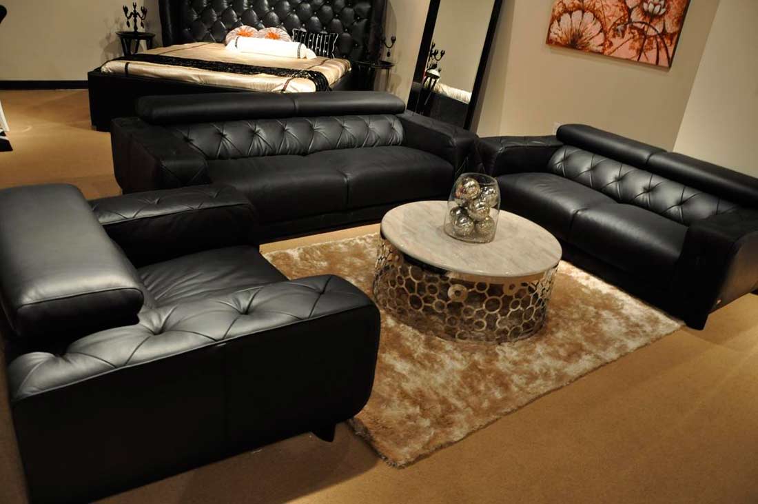 This Black Italian Leather tufted sofa set features comfortable headrests that can adjust to your comfort levels. It has a sturdy low profile design and soft quality of leather making this sofa perfect for accommodating your guests. Its Tufted Leather Upholstery make it a very attractive set that will offer your room a luxurious appeal.
