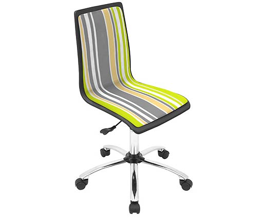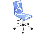 This Office Chair features a unique patterned seat and backrest over a colored wood frame, 360 degree swivel, caster wheels and is adjustable height of 17-21.5"H