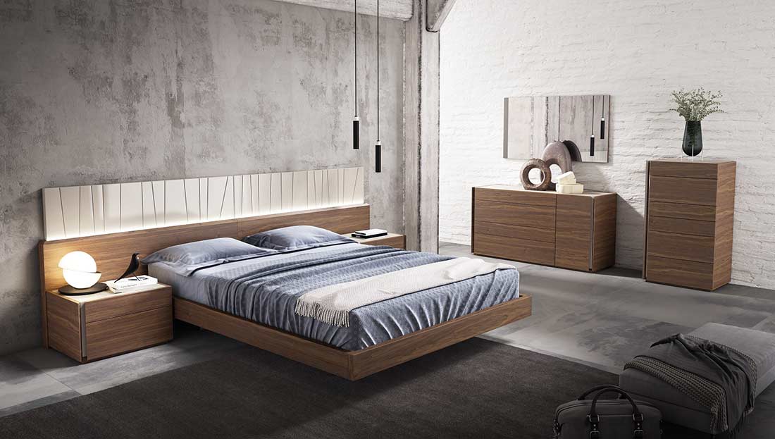 The NJ 867 premium bedroom features an elegant design beautifully mixing a natural light grey lacquer finish which looks striking against the natural