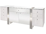 PLEASE CONTACT FOR STOCK AVAILABILITY.The Sh01 White Lacquer Desk and Credenza are large and efficient executive office furniture.The desk with its drawers, file drawers and glass top is a one of a kind piece. Great against a wall or as a stand alone piece, this desk is perfect for any modern office. The credenza comes with 2 file drawers, 4 drawers. 1 large drawer, 2 doors with a wood shelf. This credenza is large, elegant and a beautiful addition to the desk.Features