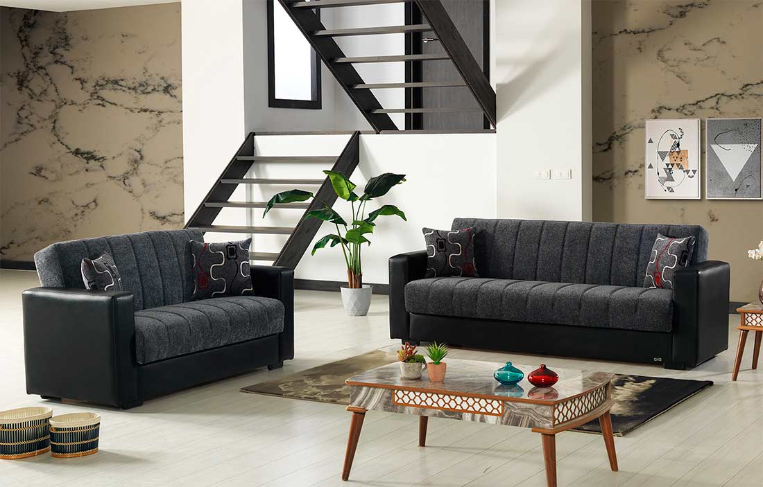Comfortably seats three and can conveniently fold out into a bed for an adult. Features hidden storage. The hidden area under the seat is perfect for storing throws, pillows, and bedding.