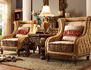 This collection is upholstered with Rich European Luxury Fabric and wood trim all around , sofa set is complimented by stylish accent pillow included as shown.